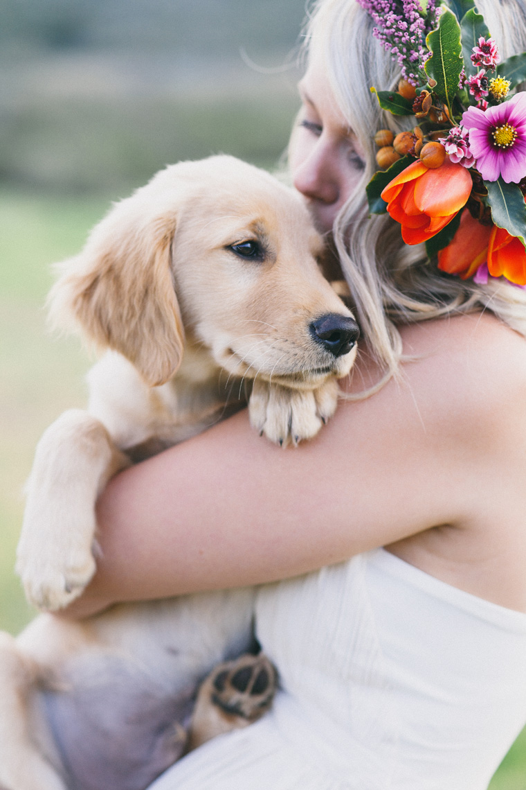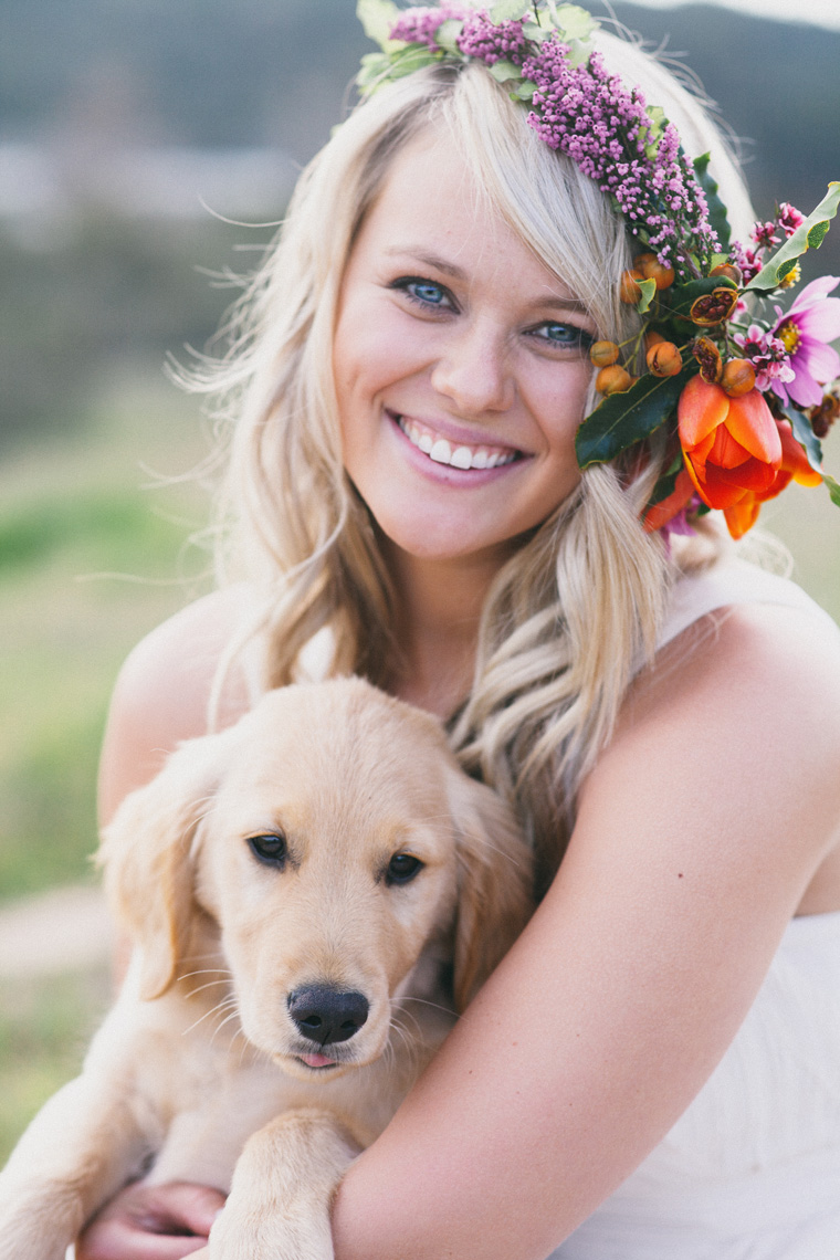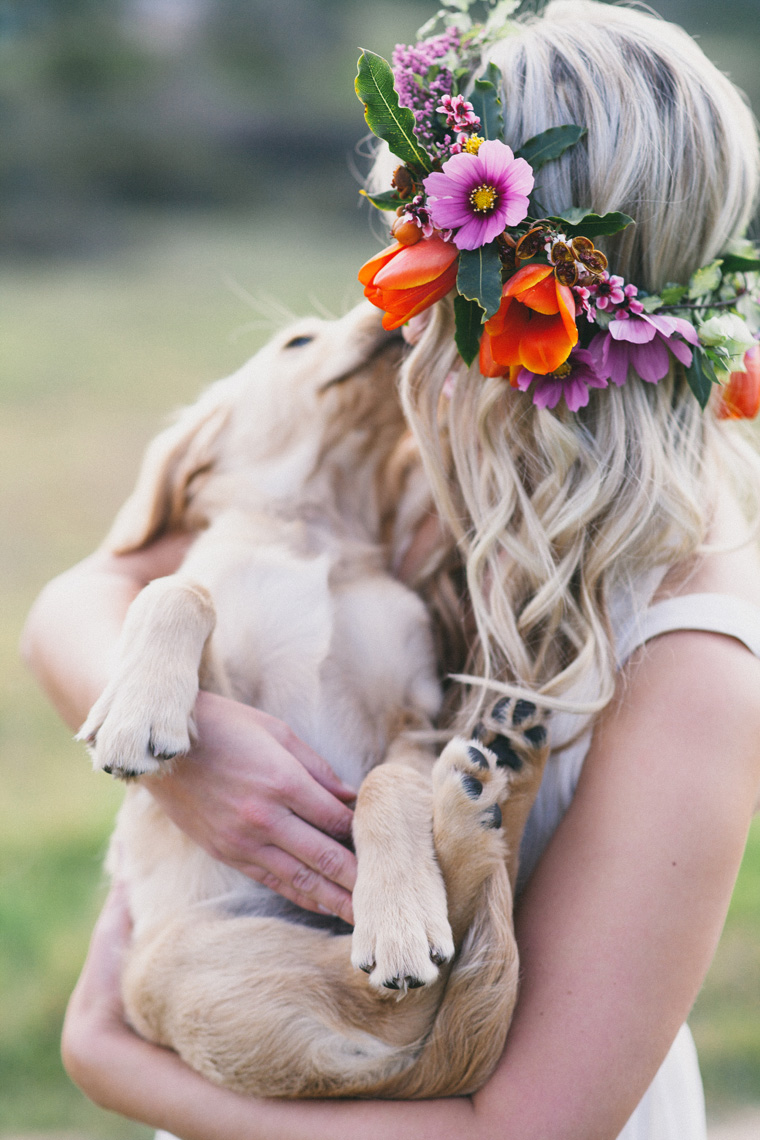I’ve been saving this simple but beautiful inspiration by Alexandra Wallace to sign off for the Easter break - it’s perfect for a spring wedding! A boho bride with fresh flowers in her hair…and the cutest pup to accompany her! For those of you planning something informal yet luxe, an outdoor wedding or a festival wedding perhaps - this should serve as some serious pin-worthy pretty. Lush fresh blooms, a four-legged companion and a simple gown…surely this come pretty darn close to wedding utopia right?