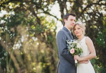 From Bride Jules: Natural and relaxed we were inspired by our local countryside and the stunning woodland and views of St Martha’s – somewhere we like to go walking. The theme was woodland…Flowers were done by my good friend Ellen with help from one of my bridesmaids. Green and white with ivy and ferns and the church was decorated with draping ivy and church candles.