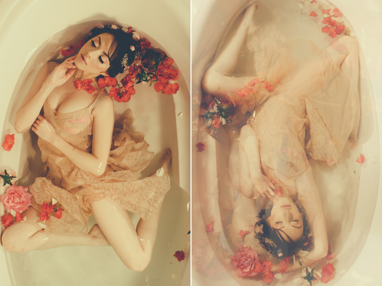 Today I’m showcasing the work of one of my favourite photographers. Alexandra Wallace is a rule-breaker…she has an idea, gathers her talented team of collaborators together and creates wedding inspiration that’s boundary pushing. A true creative. This latest offering {did you catch her neon shoot? If not take a peek here} takes the boudoir concept yet one step further…elegant, intimate and utterly breath-taking, here’s bathtub boudoir…