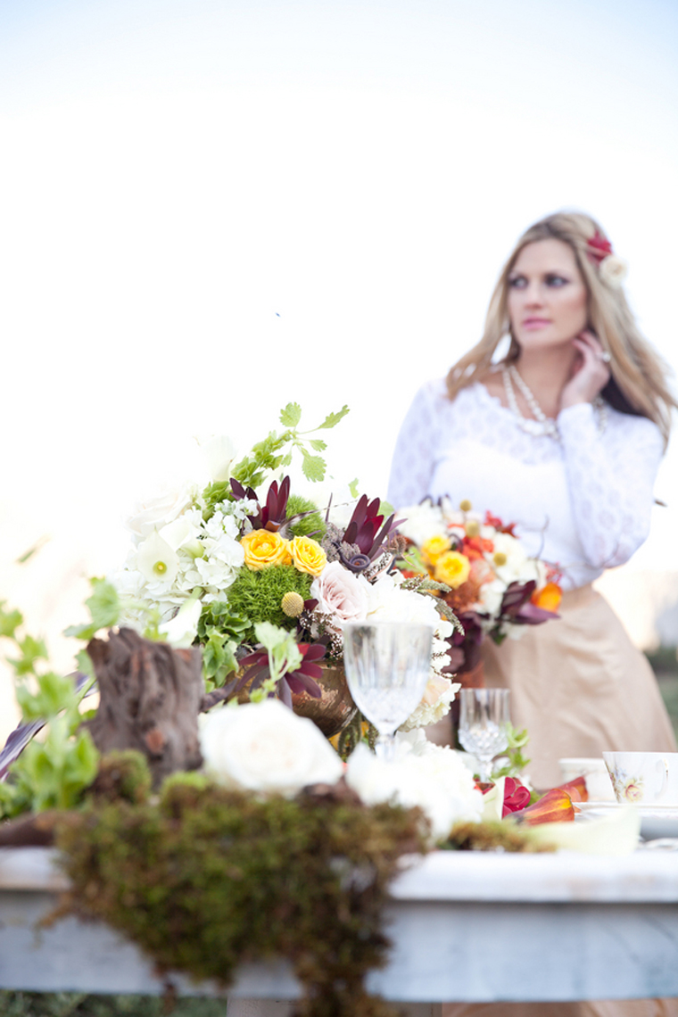 Wild and wonderful, this styled bridal shoot, created by Dawn Joseph Photography is rustic yet luxe…a contradiction in terms you might think but boy does this styling work! Rich in colour and texture, the autumn tones in the floral design works perfectly with the earthy backdrop of mountains and woods…blousy blooms paired with feathery grasses, twigs and moss - divine!