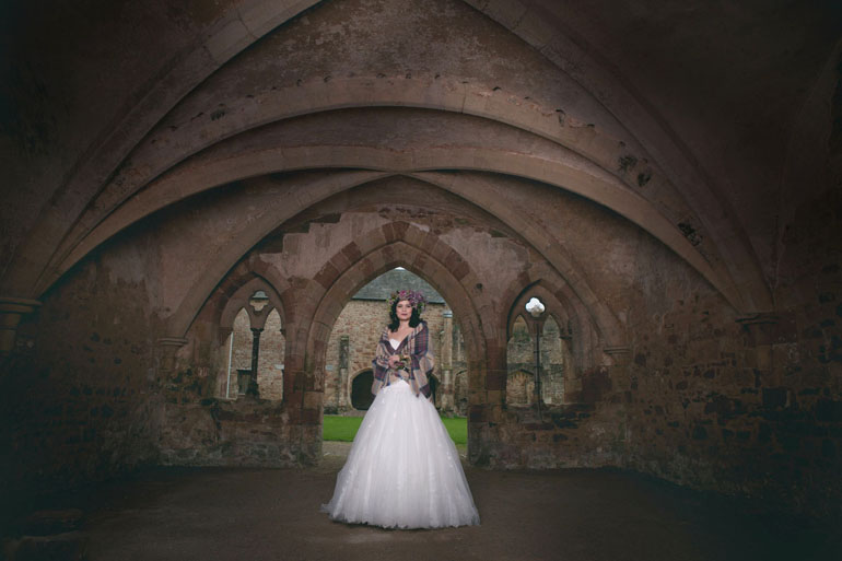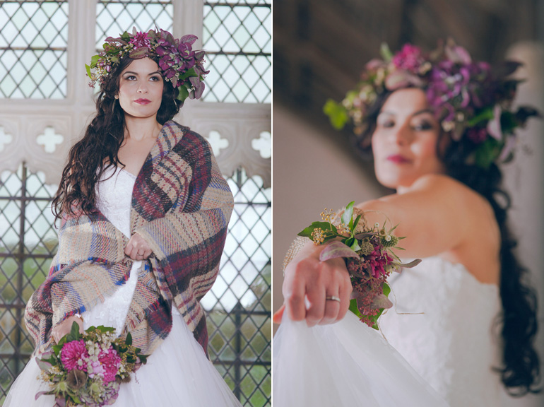 Here’s what stylists Blue Fizz Events had to say about the shoot:We were thrilled to have the opportunity to style a wedding shoot for English Heritage at their chosen location of Cleeve Abbey. Working alongside Claire Bowring who provided the introduction, we set to work at sourcing a fabulous team to deliver the theme of an Autumn Boho bride, as chosen by Linus of Linus Moran photography.