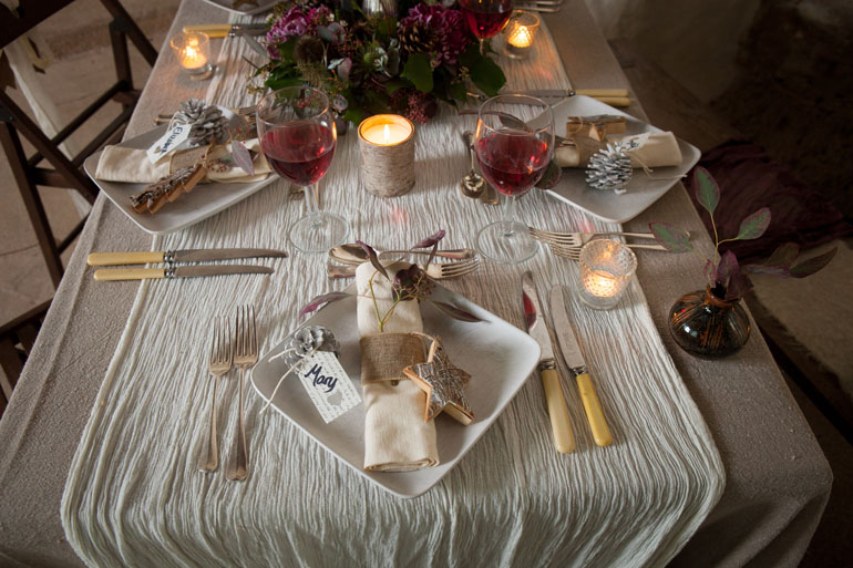 Having created an inspiration board for the team to work with, we developed the muted colour palette of Autumn plums, greens and neutrals, adding texture for definition and interest. We used the English Heritage designer throw (as donned by our model Kelly in some of the images) as central focus - bringing together the styling elements and putting them into the context of the stunning backdrop of Cleeve Abbey.