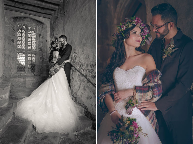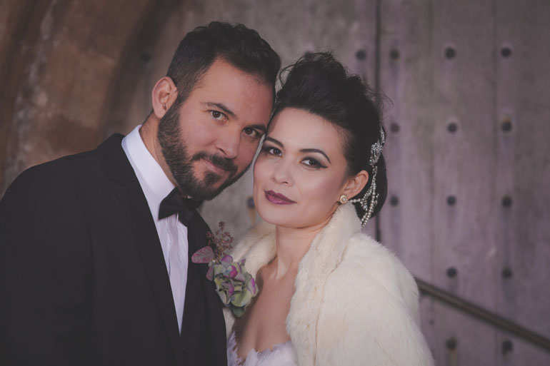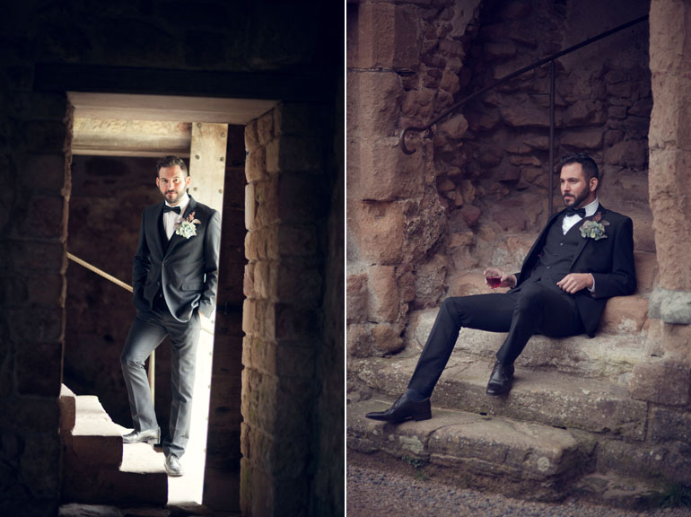 Our table setting evokes a rustic elegance and reflects the history of the building – we selected timeless pieces, authentic and original, natural, elegant.We wanted the images of the bride and gro0m to portray an elegance with a little drama – a bride mindful of her environment, connecting with it, reflecting the beauty of a historic period in time – Linus captures this beautifully behind the lens.