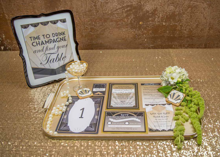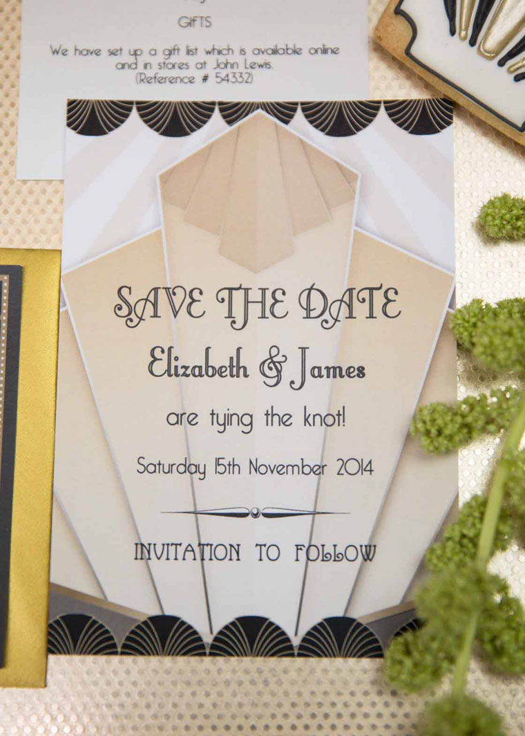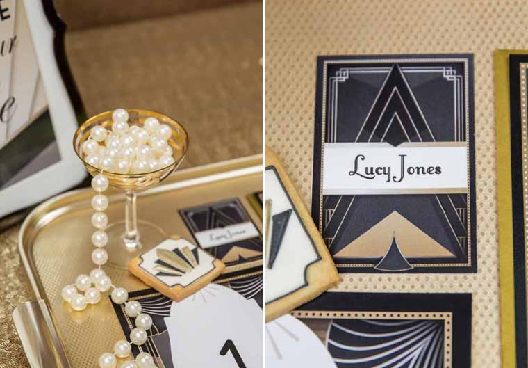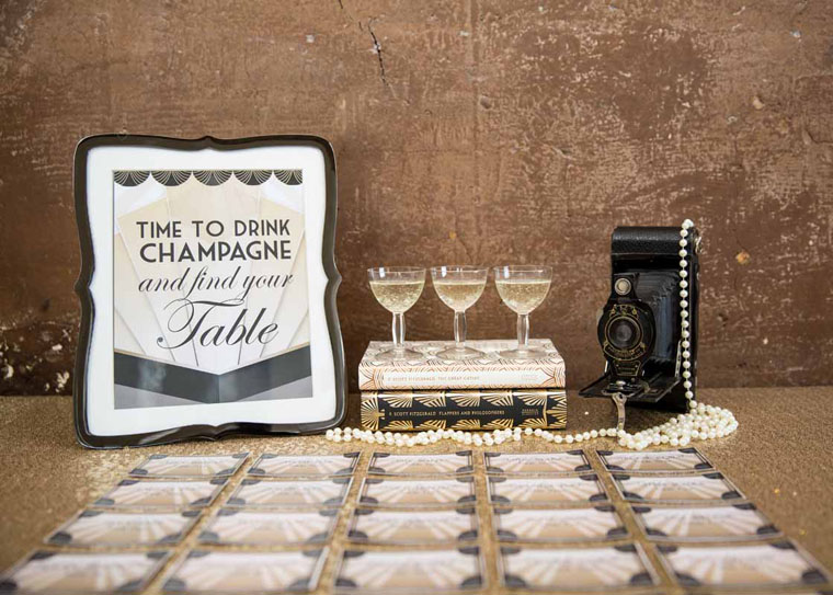 Here’s Jenny from Hip Hip Hooray to tell us a little more about what’s behind this delightful art deco wedding inspiration: At this time of year, who doesn’t love a bit of decadent glamour!? We put together this mini inspiration shoot to show you that a little sparkle goes a long way… We focused on the finer details such as the stationery and seating plan, all tied together with a gorgeous black and gold art deco theme which would be lovely for a chic city wedding. Although this style oozes opulence and luxury, the seating plan can be created using free printables, which is great for any bride with a tight budget to contend with.